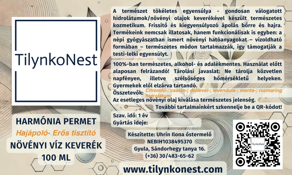 Saját tanyánkon termesztett növényeinkből készítünk hidrolátumokat, kézműves technikával, gondosan válogatott természetes alapanyagok felhasználásával. Desztillátumokat állítok elő, amely során vízgőz segítségével vonom ki a növényi esszenciákat. 2023. évi indulás óta finomítom a gyártási folyamatot, így minden termékem kis mennyiségben, de magas minőségben készül. Az eljárás során a tradicionális és modern technológiákat ötvözöm, hogy megőrizzem a növények jótékony tulajdonságait.